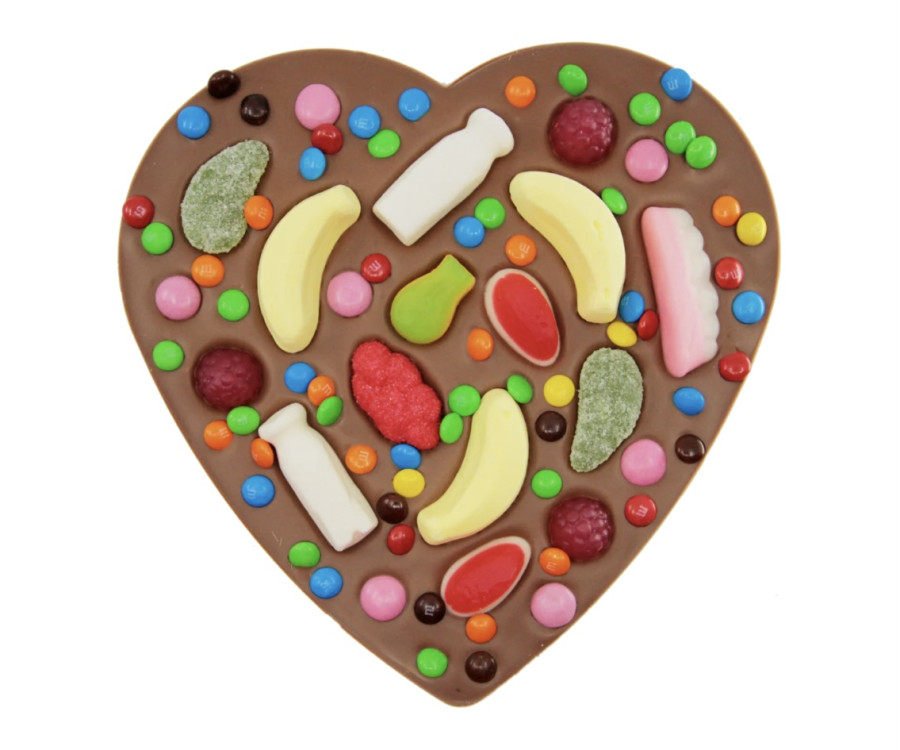 A delicious Belgian Chocolate heart, bursting with lollies.
